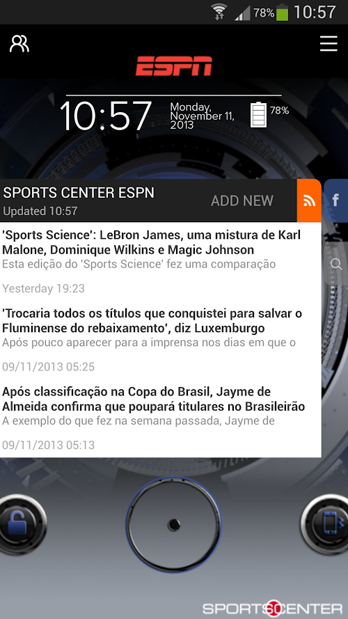O ESPN Sport Center é a central de noticias na palma da sua mão. ESPN Start Sports Center, is the new app for Android that follows the lines of the lockscreen, but now with more interactive features, the user can customize the input screen phone and also have all the latest news from the sport on the mobile screen, without entering the cell. Ever thought about having all sport on the mobile screen?