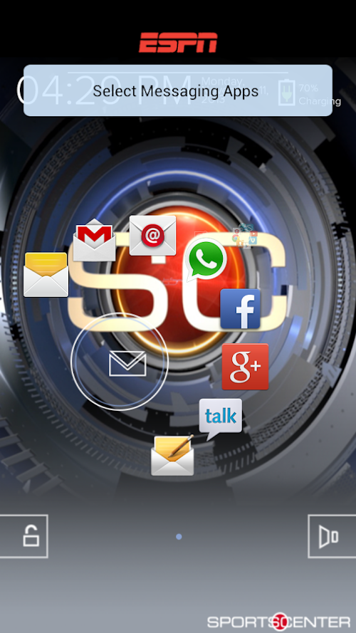 ESPN Start Sports Center, é o novo aplicativo para Android que segue as linhas do lockscreen, mas agora com funcionalidades muito mais interativas, o usuário pode personalizar a tela de entrada do celular e terá também todas as ultimas noticias do esporte na tela do celular, sem precisar entrar no celular. Já pensou ter tudo sobre esporte na tela do celular?
