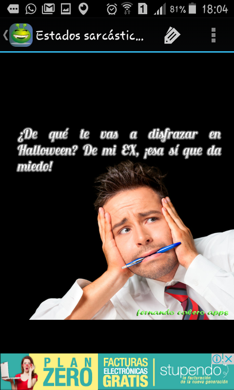 Las imágenes utilizadas en esta aplicación son libres de comercialización aplicando y respetando las normas CCO. Algunas imágenes se atribuyen al autor (Diseñado por Freepik) "States Whatssap and fb" is an application that is specifically designed to publicize our gallery posts to share in WhatsApp, Facebook and other social networks are very colorful that you can share with everyone, that is your friends, family and many friends and allow them to enjoy a healthy comedy.