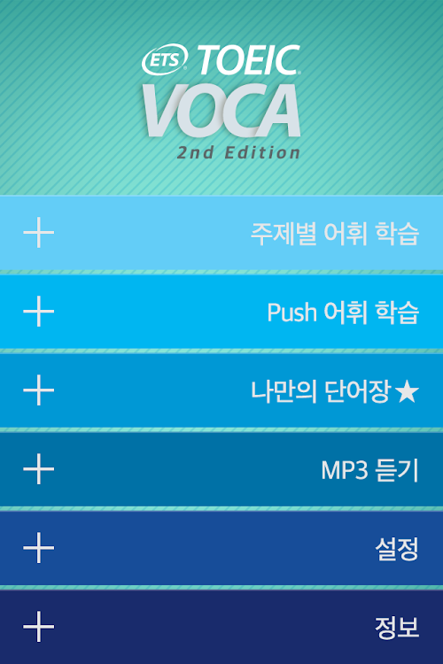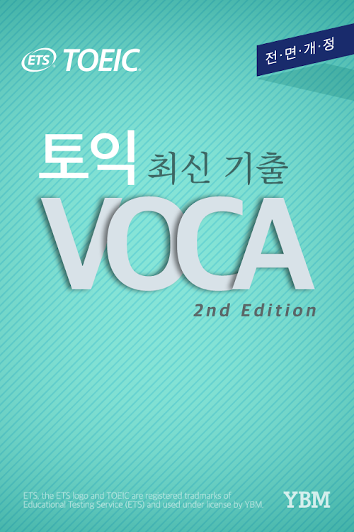 * ETS TOEIC VOCA 2015는 해당 교재의 절판 및 ETS와의 계약에 따라 2018년 2월 중에 어플 서비스를 더이상 제공하지 않습니다. 출판 홈페이지 YBMBOOKS.COM에서 해당 교재 MP3 파일은 계속 제공하니, 이를 다운로드 받아 학습에 이용해주세요.