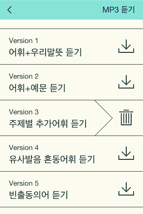 이상 5가지 버전의 MP3파일을 다운받아 들을 수 있습니다.