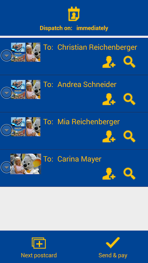 As on a real postcard you can add your greetings and 1 or 2 days later the postcard arrives directly in the letterbox of the recipient.