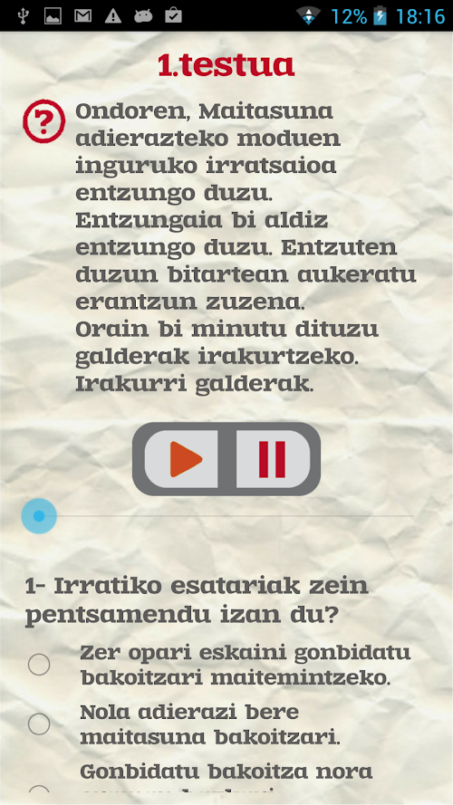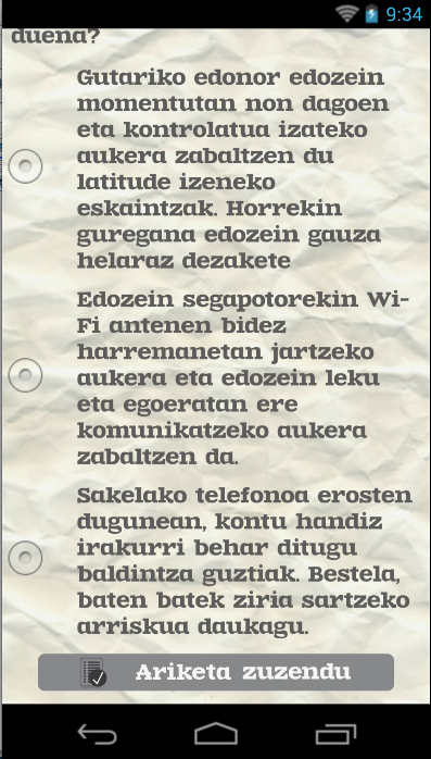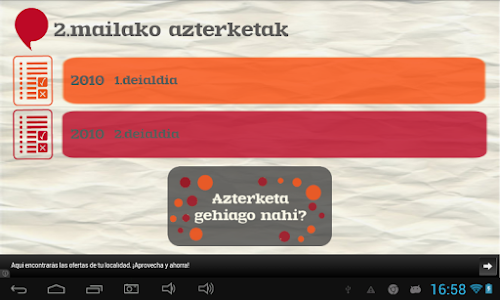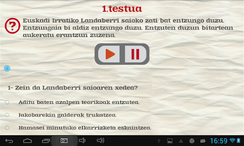 Are you learning Basque? Are you trying to pass exams HABE? Now you can make it easier than ever to examine the second level with this application. Anywhere, at the time you choose will have to hand directly on your smartphone or on your tablet official exams from previous years. You can make and correct at the time a lot of exercises.