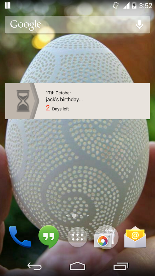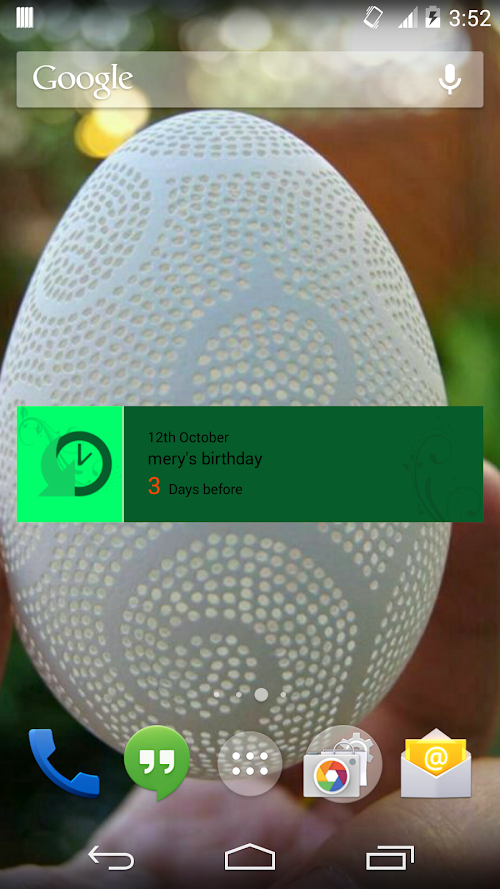 Using the Event Count Down widget, you will never miss some special date like retirement, graduation, delivering a baby, serving the army, shopping trip, salary, bonus, summer holiday, Christmas, New Year’s Event, Pay credit card bills, ski trip.