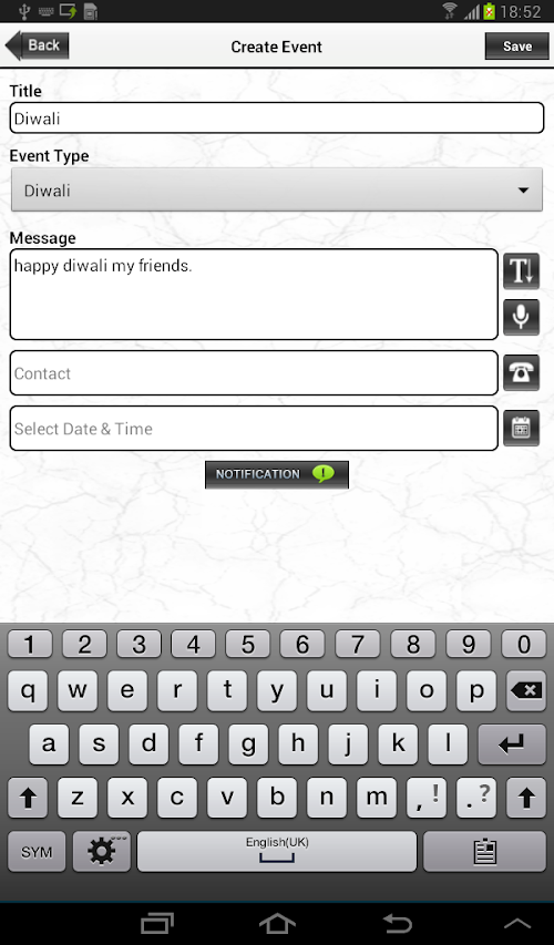 Event Manager is an application which can be used to schedule any event. You can set notification for scheduled event & as well as SMS & EMail can also be scheduled for the scheduled event. Their is an option to save Templates under Event Types, which can be used at the time of creating message for event.