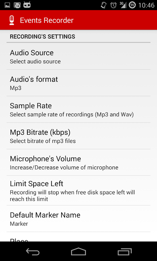 This version of Events Recorder Free Android App comes with one universal variant which will work on all the Android devices.
