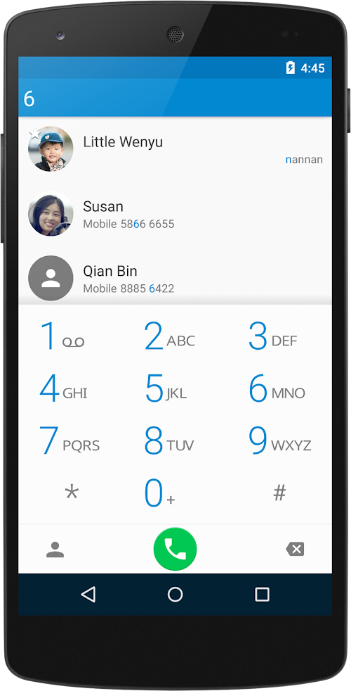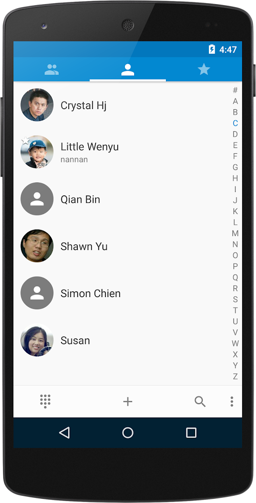 • Long press the contacts button(at left-bottom corner of dialer view) to quick access favorites