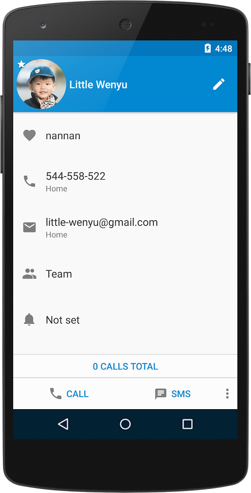 • Swipe contact item left or right, to send SMS or make a call directly