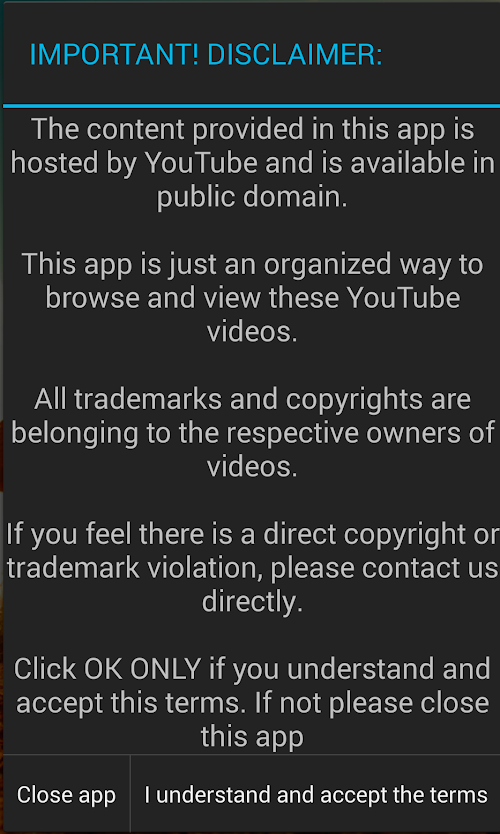 The content provided in this app is hosted by YouTube and is available in public domain.