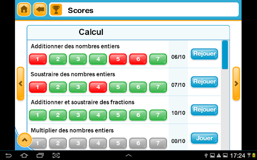- Un tableau de scores permet de suivre la progression de l’enfant.