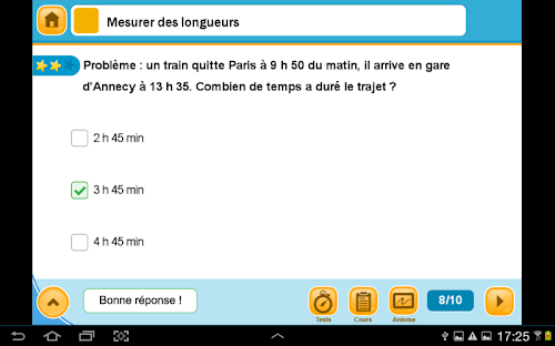• 1 000 exercices permettant à l’enfant de varier son entraînement avec différents types d’exercices : cases à cocher, étiquettes à déplacer, texte à sélectionner ou à saisir, tableaux à compléter, etc.
