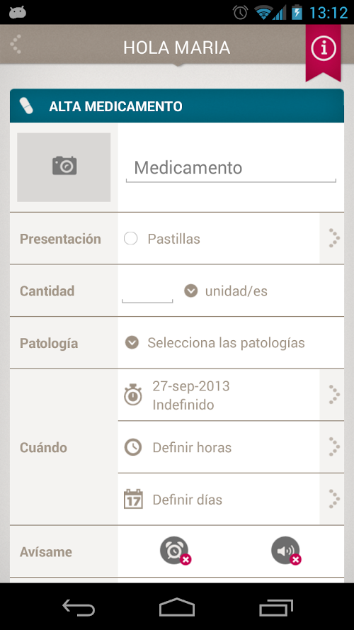 2. Mi medicación: realiza el alta de los medicamentos que tomas, configura los recordatorios y relaciónalos con las patologías introducidas.