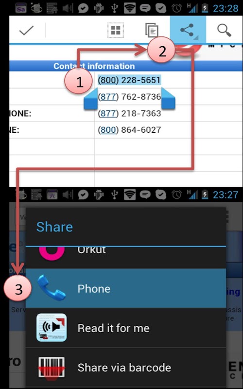 if the user copies a phone number on web page, can be able to share the phone number to app "Extra Phone Settings" to have a phone call.