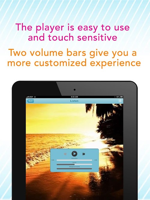 * Two volume bars to adjust the hypnosis audio and background audio separately for a more user-friendly experience