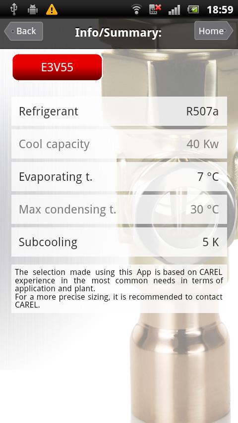 ExV Selection is the application, developed by CAREL, to quickly and easily select the correct size of the electronic expansion valve, either for A/C or retail applications.