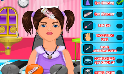 Cute Sisi goes to eye doctor for her eye, because it hurts a lot., it’s up to you to help her out with this little problem. This amazingly fun kids eye doctor game is a bless to play. Have you ever experienced an eye test? Do you dream of becoming an eye doctor? Be a doctor, diagnose and cure your patient’s eye problems in this amazing fun kids eye doctor game where you can do a real eye test. The doctor’s office is full of tools and eye medicines, make use of them and keep checking your patients. But be careful, eyes are more sensitive than nose, ear, throat and stomach. You might have played a lot of super fantastic doctor games, girl games, pet hospital, laser or surgery games, but this one is truly amazing. Use your brain and cure your patients at this eye doctor hospital.