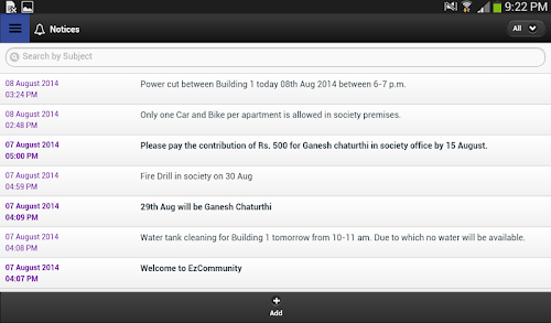 3.Notices: Admin and Facility staff can create notices that are accessible to whole Community or specific buildings or specific Apartments.