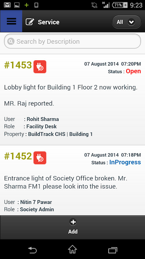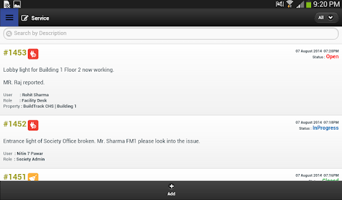4. Service: Residents can initiate service requests for Facility Managers to review and get updates on the status of their request