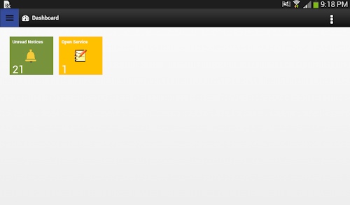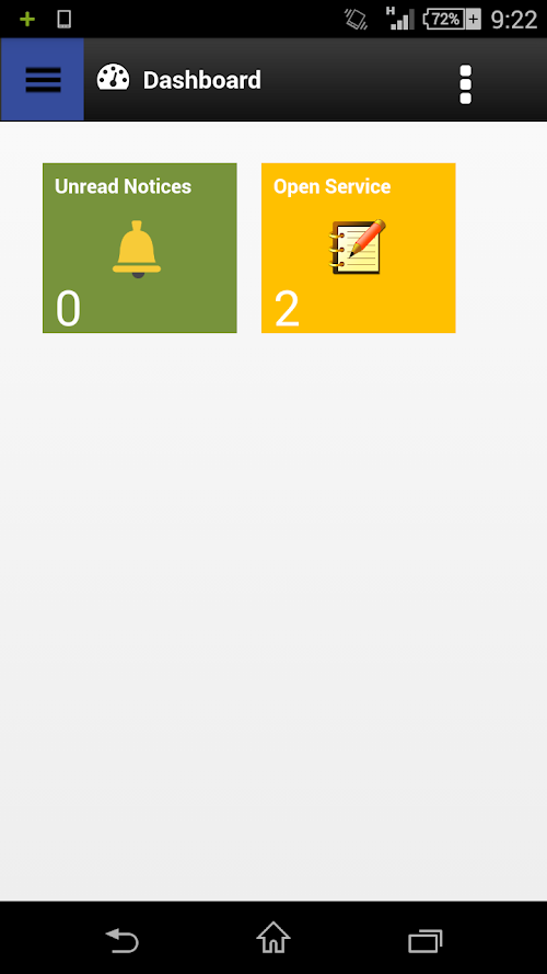 5. Dashboard: Shows important information such as 'Unread Notices' and 'Open Service Requests'