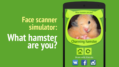 Scanner person works is simple - point the camera phone to your face, or the person who you want to scan, click the "analyze" and see the results of the test! Hamsters a lot, try to collect them all!