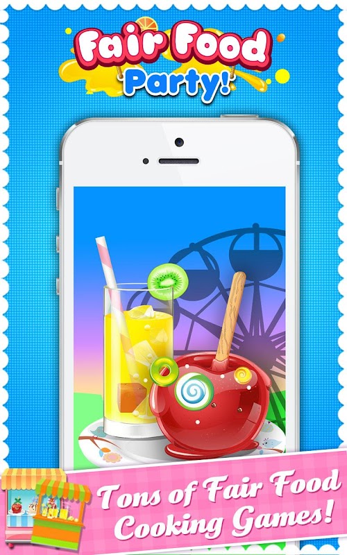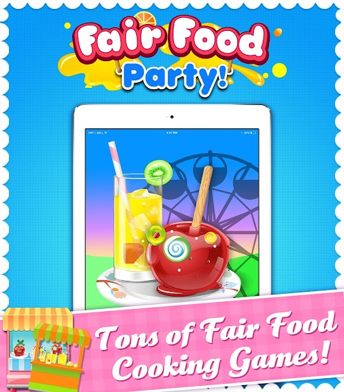 Ever wanted a tasty candy apple or festival style lemonade drink without having to go to the fair? Now you can! Fair Food Maker is an amazing cooking game for kids that lets you create and decorate candy apples, lemonade, snacks, treats and drinks you'd normally have to go to the party to eat. Sit down in your own home and let your kids start cooking. You supply the festival games, they provide the candy apples!