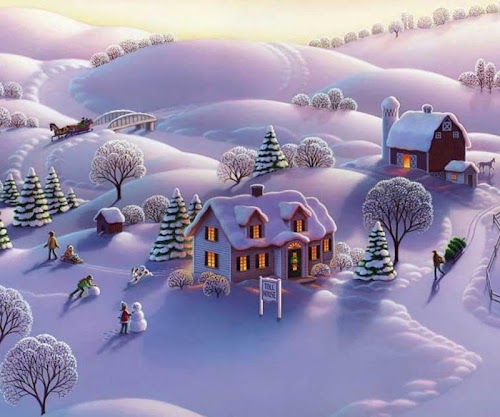 Fairy Christmas Night. Beautiful Christmas fairy-tale world. Christmas, snow, Christmas trees, snow falling outside, HD fairy Christmas Eve wallpaper. Favorite holiday!