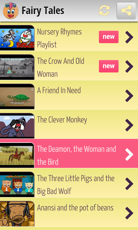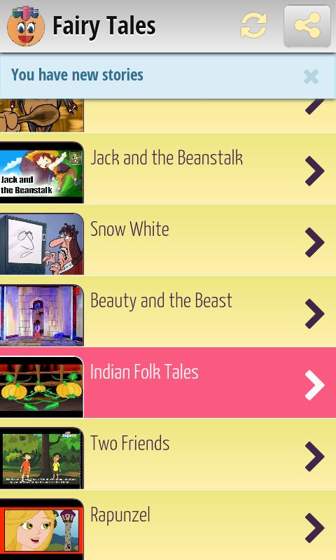 Use the share button to submit the application for free children's stories or videos that you like by WhatsApp, Facebook, Twitter, etc.