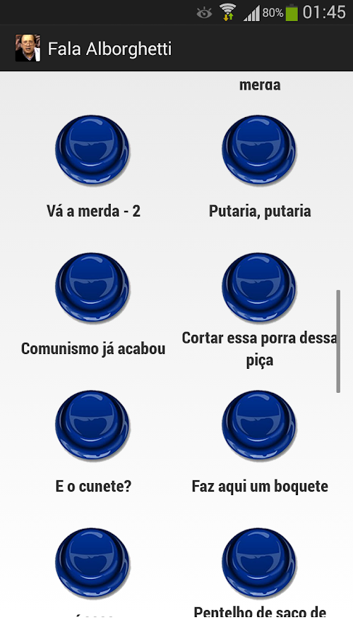 Instant button com as melhores frases do mito Alborghetti pra você usar no trabalho, no churrasco com os amigos, na igreja, na sala de aula, no elevador ou até mesmo pra elogiar seu vizinho pelo interfone.