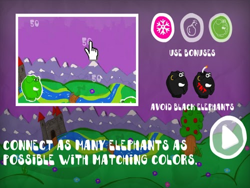 Bouncy Elephants is a funny match 3 and connect game for Android Smartphones and tablets. Play away all the little elephants by making combinations. You can match up the elephants if they are the same colour. Try to connect as many as you can to make a really big combo and score lots of points!