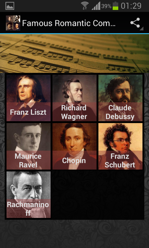 This version of Famous Romantic Composers Android App comes with one universal variant which will work on all the Android devices.