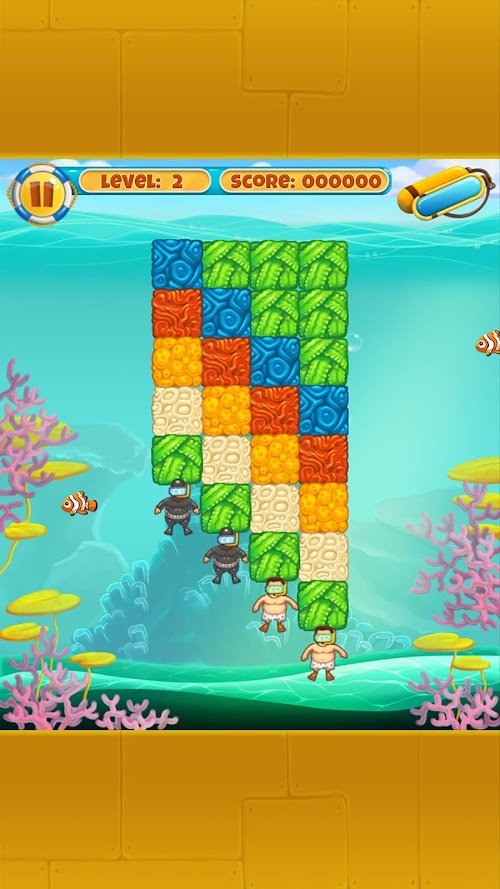With level after level of exciting challenges you’ll come up against some headscratching puzzles: you’ll have to save numerous divers at the same time and new blocks will appear to make life even more difficult. Whatever happens, just make sure you save all of them in time or they might just run out of air!