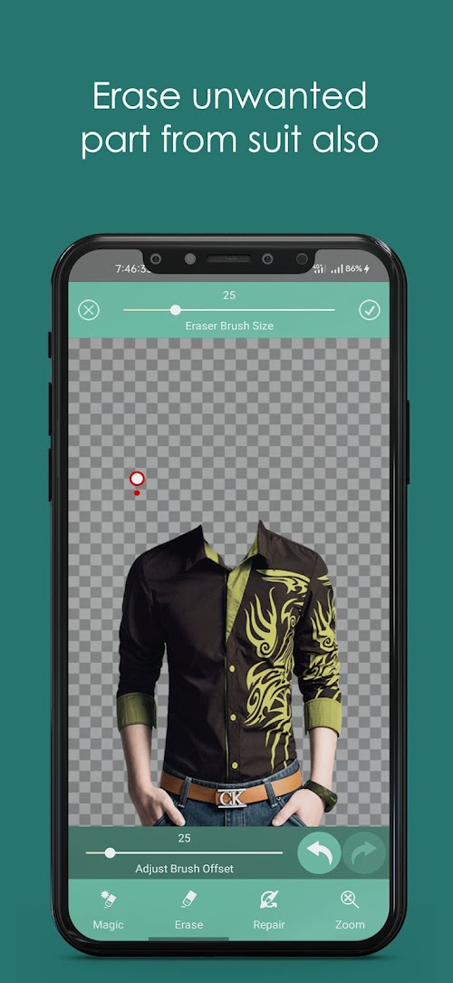 If you want you can erase the background also for the batter result by the Man Fancy Shirt Photo Suit app.