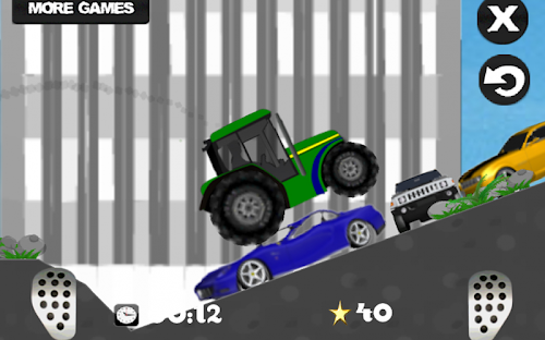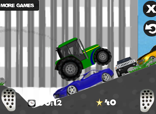 Someone drop some old cars on your farm land and now you need to clear the cars from your farm land. You do this by racing through the level and collecting a the points that you can find on your way. After racing to the end of the level you clear out your farm land. Clear all the 12 farm hill racing levels. Smashing a way through your lands is extremely fun to do and because this farm driver game has a very easy gameplay it appropriate for all ages. Kids will love the game and the funny cartoony graphics.