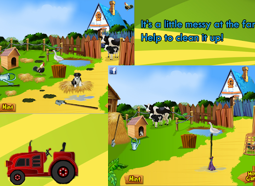 There are three levels to play in this farm clean up game. First you have to clean up the stables and put the animals back at their stables. In the second level you have to plant the vegatables in the field and put the hay back at the haystack. In the last level you have to clean up the barn. Put all the vegatables in basket. And put the tools and hay back where the used to be. If you don’t know where the stuff needs to be, you can click on the hint button. Have fun in this farm house clean up decoration game of Top Girlgames! Show your cleaning skills!