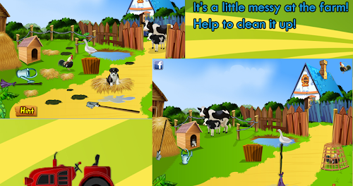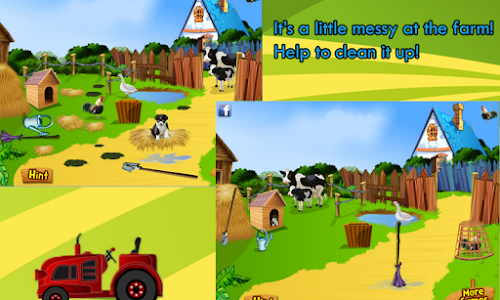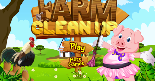 The farmer is on vacation and he left the farm and his house in a complete mess. Help out the farmer and clean up his nice farm and house. The animals like it when the farm is clean instead of a mess! The farm is a paradise if it is clean and tidy. Place the animals back in their stables and put the hay back in the haystack. A lot of tools and junk are scattered around the farm, what makes it a mess. Help the farmer place all the tools back where they belong and throw the trash in the trashcan. Also clean up the water pools by mopping them away. So when the farmer comes back from his vacation he will arrived at his nice cleaned up farm and house. So show your cleaning skills in this nice farm house clean up decoration game. Do you like to help the farmer at his farm? He now needs your help, so he also can go on vacation. If you cleaned up all the mess, all the animals will be very happy. So you can help the farmer and animals with cleaning up the farm.