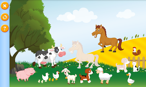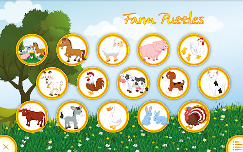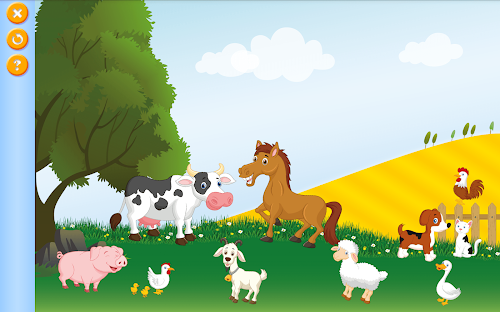 - 1 puzzle where different farm animals have to be placed on the farm. If the animal is at the correct place, the sound of the animal is played.