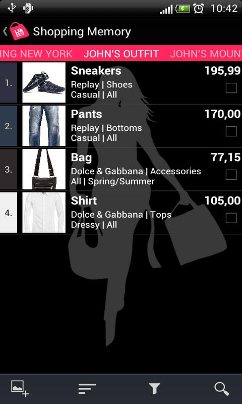 - Create a separate lists with clothes from your closet and never forget what you already own, combine clothes from this list to create your outfit for Saturday night out, birthday party, etc.