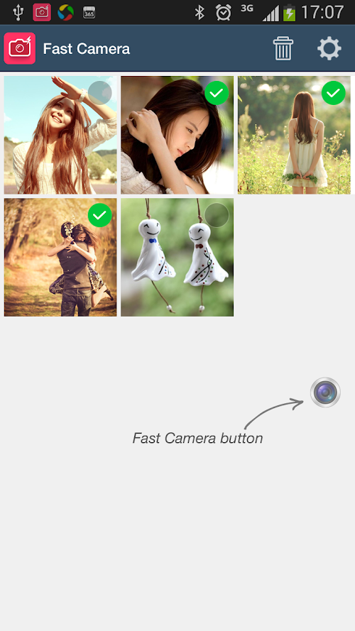 Fast Camera is an extremely quick camera with a float camera button. This app provides a camera button always on the top of the screen! Whatever you are doing (playing games, surfing the internet, or use any other apps) on the phone, you can click this float button to take a picture immediately. Never miss any scene that is worth capturing.