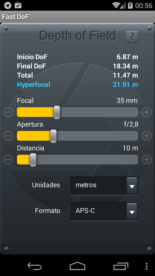 Calcular la profundidad de campo y la distancia hyperfocal de una manera rápida e intuitiva.