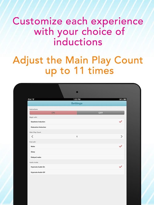 * Each session can be customized with the option to listen to the hypnosis track up to 11 times