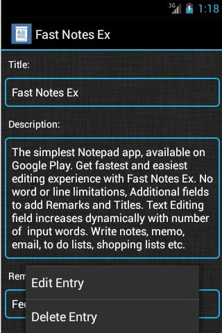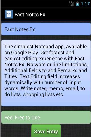 The simplest Notepad app for Android Smartphones and Tablets. Get fasted and easiest editing experience with Fast Notes Ex.