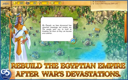 Return to the golden realm of ancient Egypt in this challenging strategy game: Fate of the Pharaoh! The glorious Egyptian empire is left exhausted after a longstanding war. The greedy invaders fled, leaving chaos and ruins of a once magnificent kingdom. Become the loyal Pharaoh’s adviser and help him to restore peace and prosperity in the golden cities of Egypt. Construct houses and beautiful castles, collect taxes and materials, set up production and trade, and fight crocodiles and wicked cobras. Can you return Egypt to its days of glory?