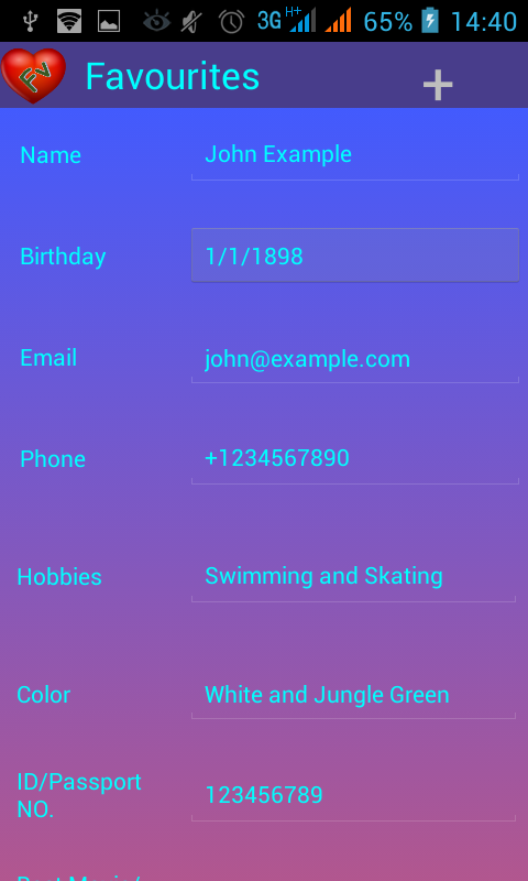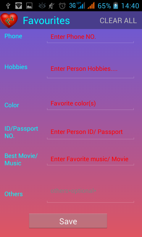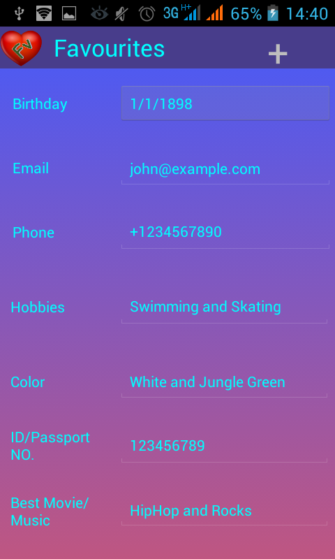 This application helps you to keep information about your friends, relatives and loved ones information on what they like, i.e. their favorites. App by www.codorps.com
