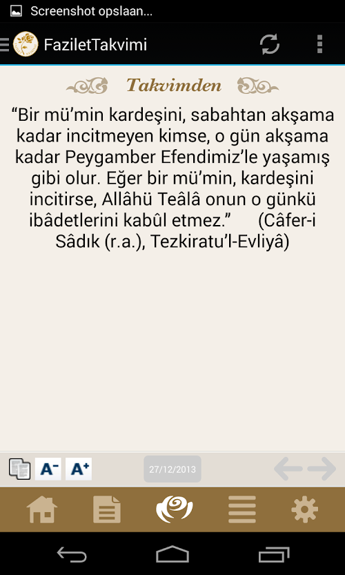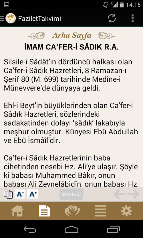 - Vakitler arasında, arka sayfa yazılarında ve günün sözünde sonraki ve önceki günlere ilerleme imkanı sağlanmıştır.