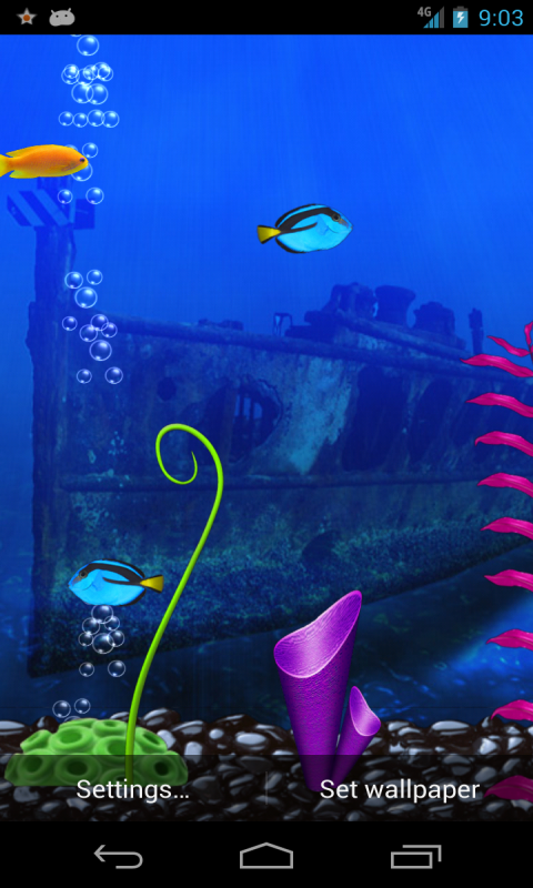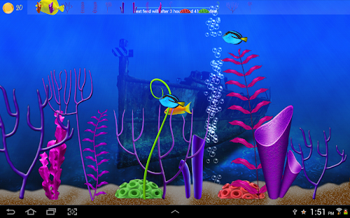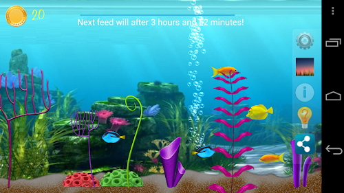 Three different aquarium landscapes are available for choosing. Feed Fish is unique because it is both a game and a live wallpaper of an aquarium.
