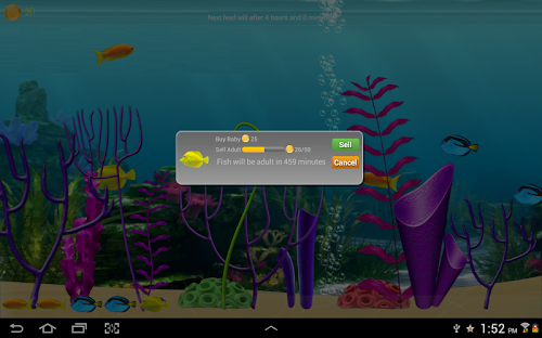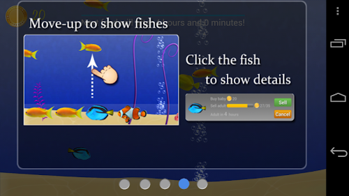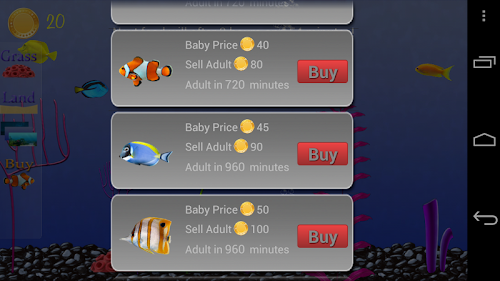 With Feed Fish, you can buy baby fish at low price, feed it and wait a few hours for it to grow into an adult fish. You may then sell it at a higher price to gain money and buy