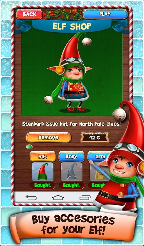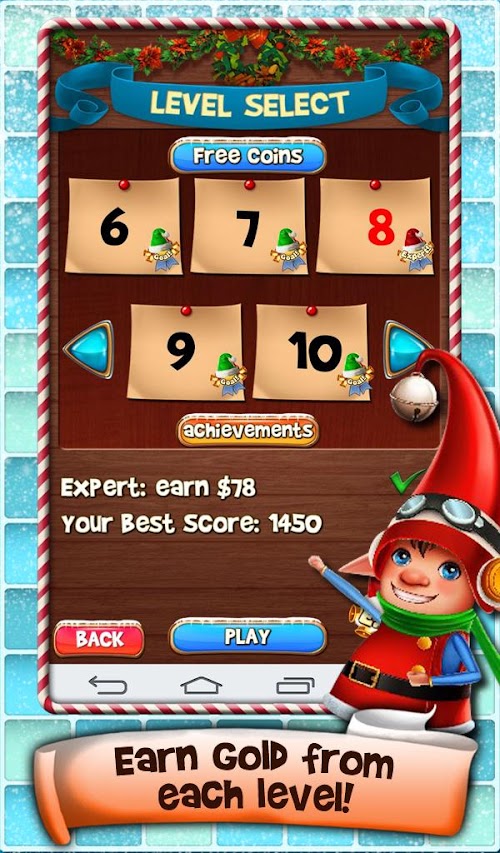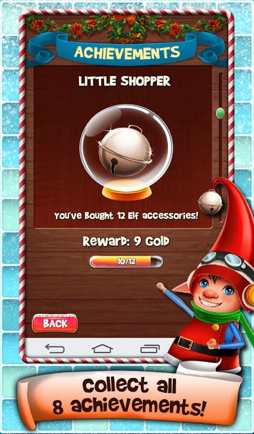 - Earn Gold from each level or by completing achievements, then buy accessories for your Elf!