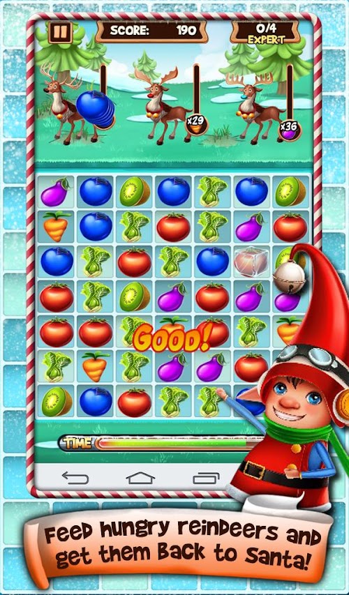 Feed hungry reindeers and get them back to Santa!
