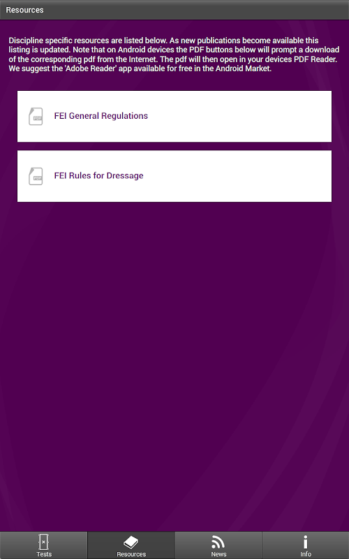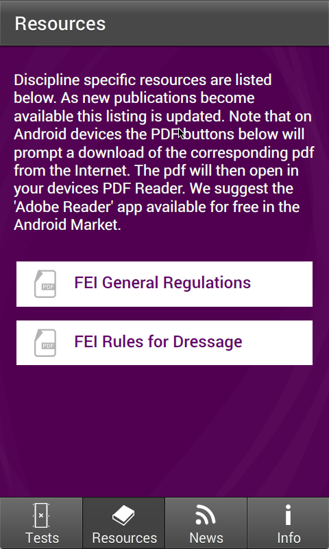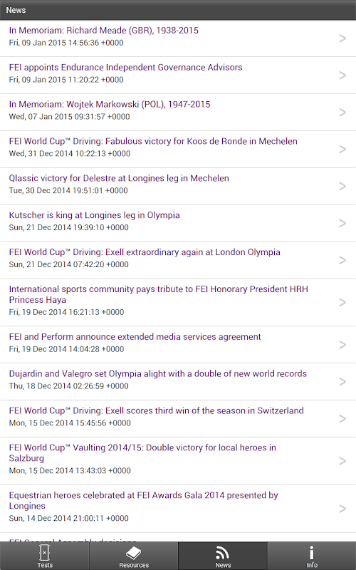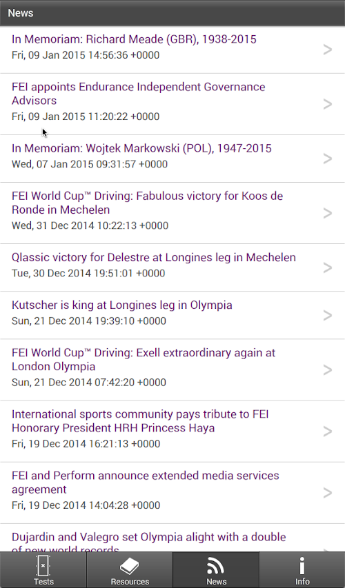 • Keep up-to-date on the latest in dressage competition through the FEI news feed