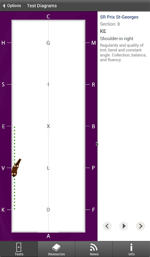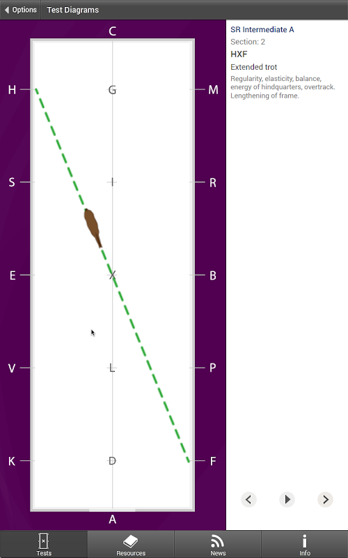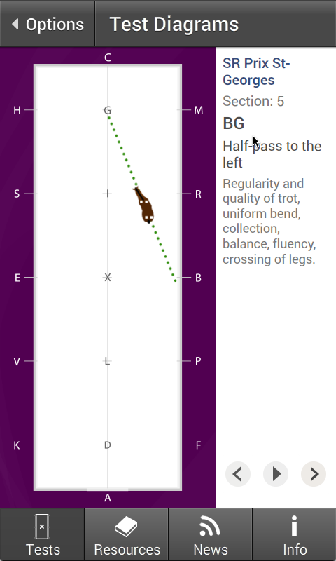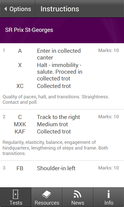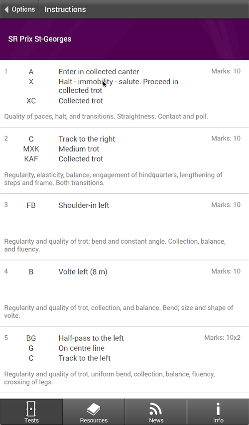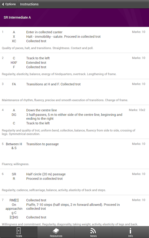 • Reference the official FEI dressage test score sheet to see how judges will mark the users performance